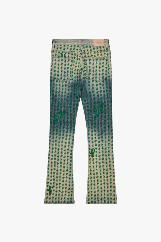 Valabasas "Asterisk" Blue / Green Stacked Flare Jean